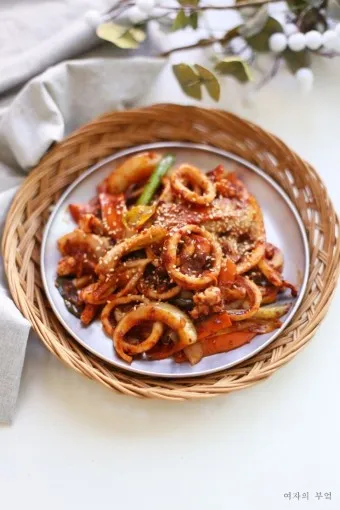 오징어볶음의 매력은 바로 쫄깃한 식감과 매콤달콤한 맛의 조화예요. 이 맛의 비밀은 바로 신선한 오징어와 잘 어우러진 양념에 있답니다.